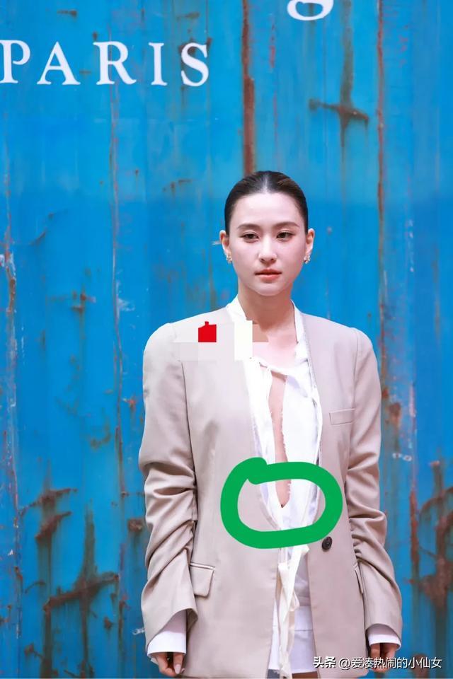廓形西装搭配长靴,本是很硬朗的一套,可是她穿昭着一件开衩到肚脐的内搭,真空上阵,脖子里还挂着几根布条,让系数造型显得海底捞月,既不性感也不酷飒,反而显得很繁琐不够清亮!