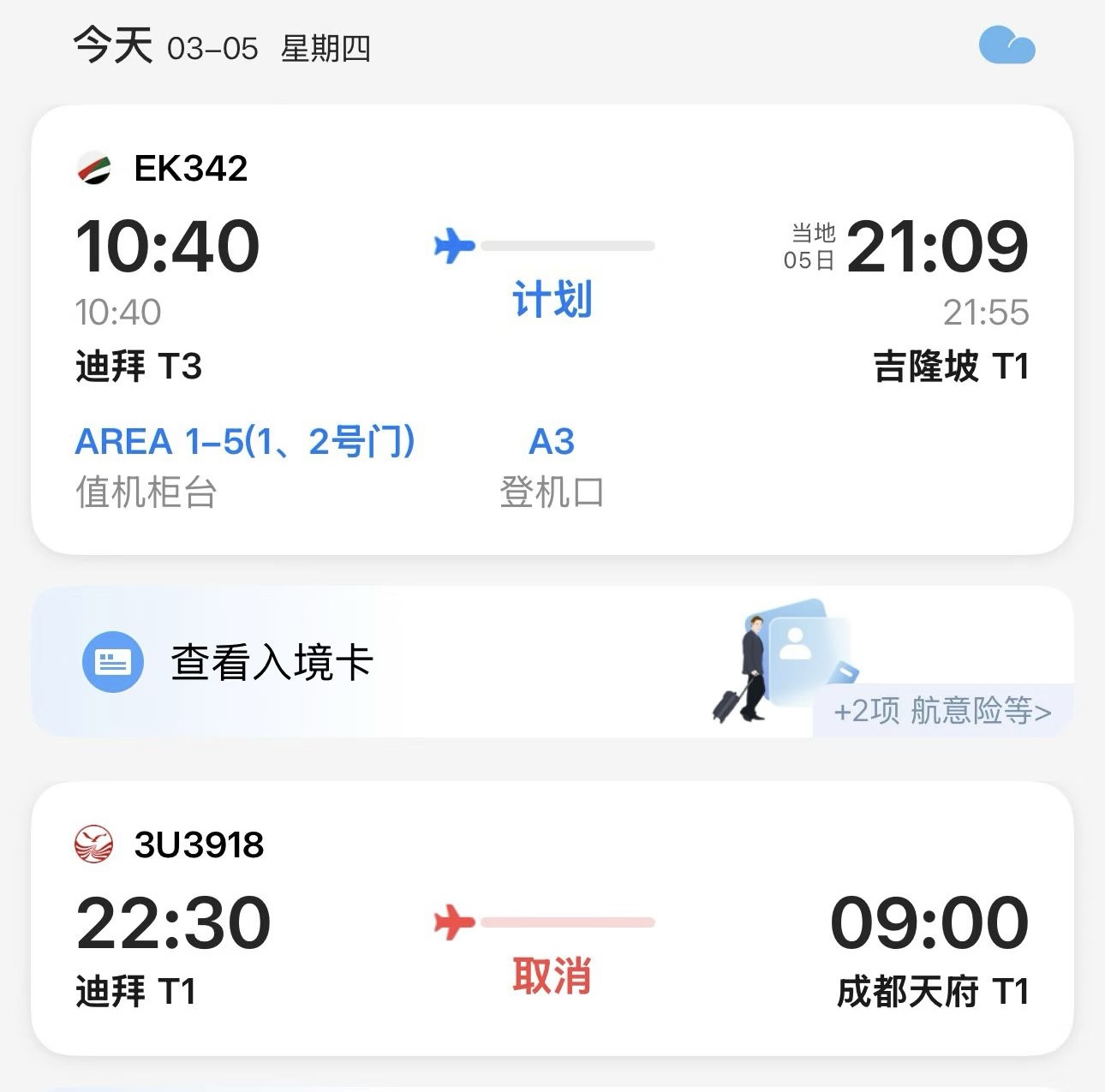 3月4日晚,冯先生接到航司见告,由于群众安全原因,5日从迪拜飞往成皆的3U3918次航班再次被取消,航空公司进行了全额退款。于是,他选择了绕说念吉隆坡的决议。“咱们5日上昼11点摆布从迪拜起程,晚上抵达吉隆坡。第二天,ag手机网乘坐吉隆坡飞往成皆的OD672次航班,凌晨2点摆布抵达天府机场。”