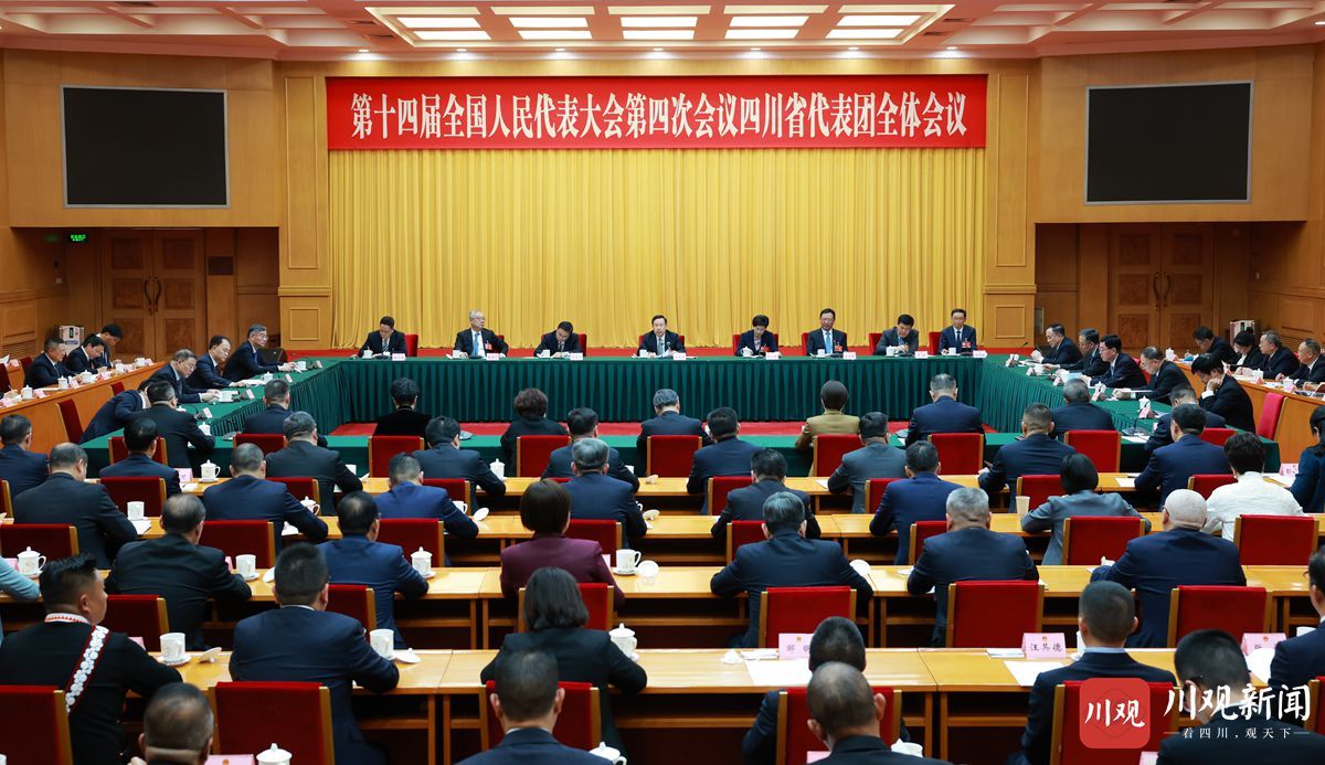 3月3日下昼,在北京出席十四届寰宇东说念主大四次会议的四川代表团在驻地举行举座会议。省委文告、省东说念主大常委会主任王晓晖主握会议并言语。